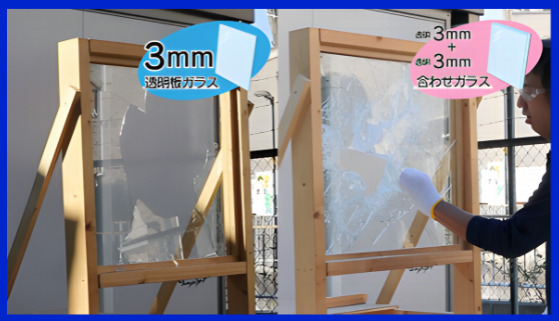 「合わせガラス」「防犯ガラス」「安全ガラス」